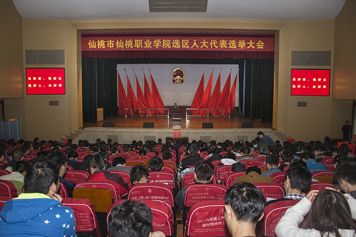 10月26日,仙桃职院选区人大代表选举大会在文化艺术中心举行。党委书记郭百高、院长李立勇等学院领导与8000余名选民一起参加投票选举,依法行使自己的民主权利。