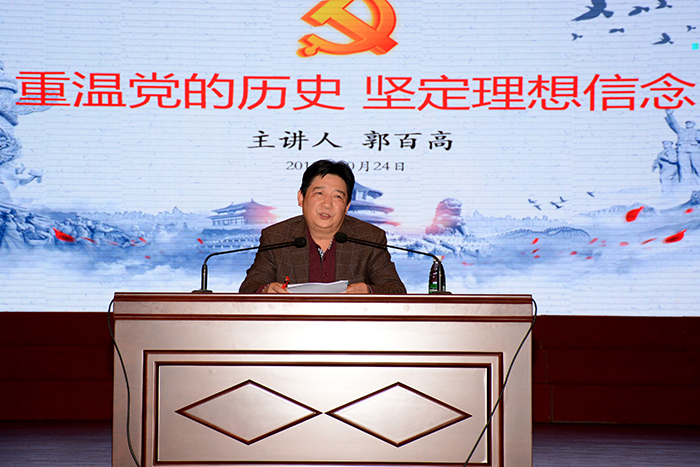 郭百高围绕南湖红船、井冈旗帜、遵义会议、延安精神、开国大典、党的十一届三中全会等重大历史节点,回顾了党的光辉历程,与大家一同学习习近平新时代中国特色社会主义思想和党的十九大精神。
