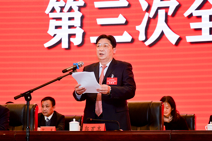 党委书记郭百高在讲话中指出,这次会议是在全院上下喜迎建党100周年、奋力实现学院“十四五”精彩开局之际召开的一次重要会议。面对新形势、新任务和新要求,全院上下必须以追求卓越的使命感和只争朝夕的紧迫感,在新的征程中守正创新、继往开来、顺势而为、乘势而上,奋力开创学院高质量发展新局面。一是切实提高政治站位,不断增强政治判断力、政治领悟力、政治执行力,认准党建统领主心骨,拓展思想政治主渠道,担当立德树人主责任,高扬宣传舆论主旋律,筑牢意识形态主阵地,把握全面从严主基调,坚持步调一致才能得胜利。二是突出重点举棋落子,扩大优质生源,提升人才培养质量,推进文明校园创建,推动产教融合发展,壮大要素保障,促进高质量就业创业,统筹改革发展和安全稳定,着力推动学院各项工作高质量发展。三是立足实干狠抓落实,瞄准目标任务抓落实,坚持问题导向抓落实,勇于改革创新抓落实,转变工作作风抓落实,提高能力本领抓落实,发扬斗争精神抓落实,层层传导责任抓落实,主动作为,奋发有为,担当善为,立誓不获全胜决不收兵。