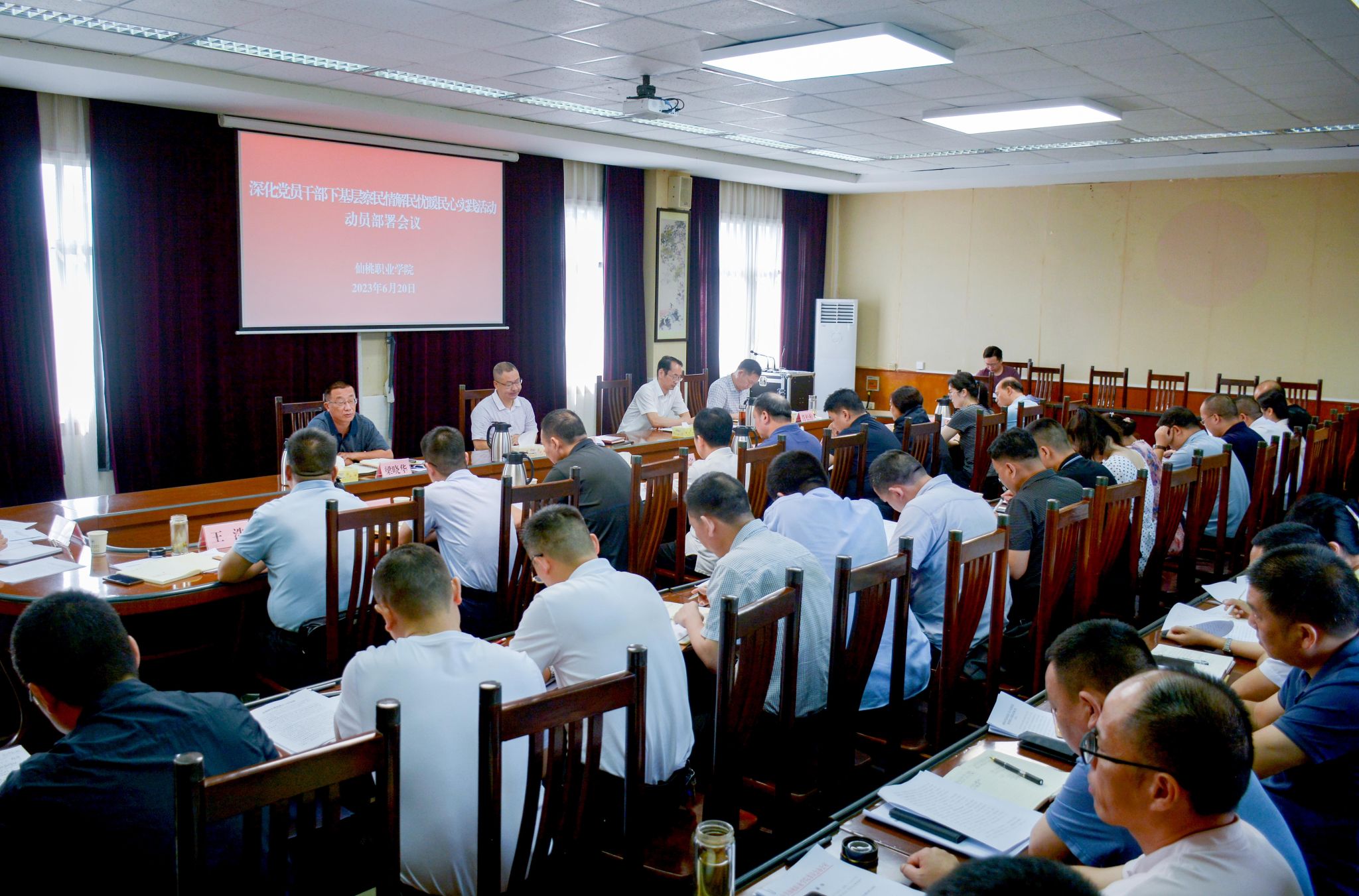 6月20日上午,党委书记邓念国主持召开深化党员干部下基层察民情解民忧暖民心实践活动动员部署会议,传达学习全市有关会议精神,研究部署下段工作。