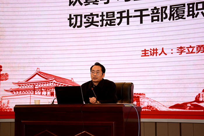 1月17日,学院在多功能厅举行中层干部培训会,党委书记郭百高、院长李立勇等学院领导出席会议。